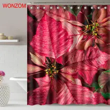 .Pictures of WONZOM Red Leaves Shower Curtain Fabric Bathroom Decor Decoration Cortina De Bano Polyester Flower Bath Curtain With Hooks Gift