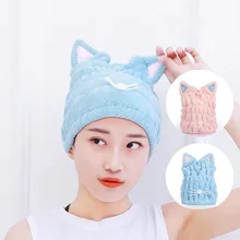 .Pictures of NEW Cute Cat Ear Design Shower Cap Bathroom Women Dry Hair Cap Cute Towel Coral Fleece Absorbent Cat Ear Magic Super Bath Cap