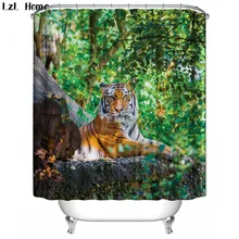 Offer Description of LzL Home 3D Animal Curtain for Bathroom Waterproof Polyester Fabric Shower Curtains Cute Funny Home Decorations 12 Hooks