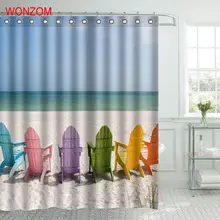 Price Description of WONZOM Beach Sand Shower Curtain Fabric Bathroom Decor Chair Decoration Cortina De Bano Polyester Sea Bath Curtain With Hooks